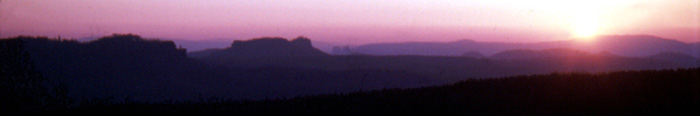 Papststein, Gohrisch, den Großen Winterberg, rechts unter der Sonne steht der Zirkelstein, zum Bildrand die Zschirnsteine - die Sächsische Schweiz von vorn bis hinten. Hatte ich zuviel versprochen?